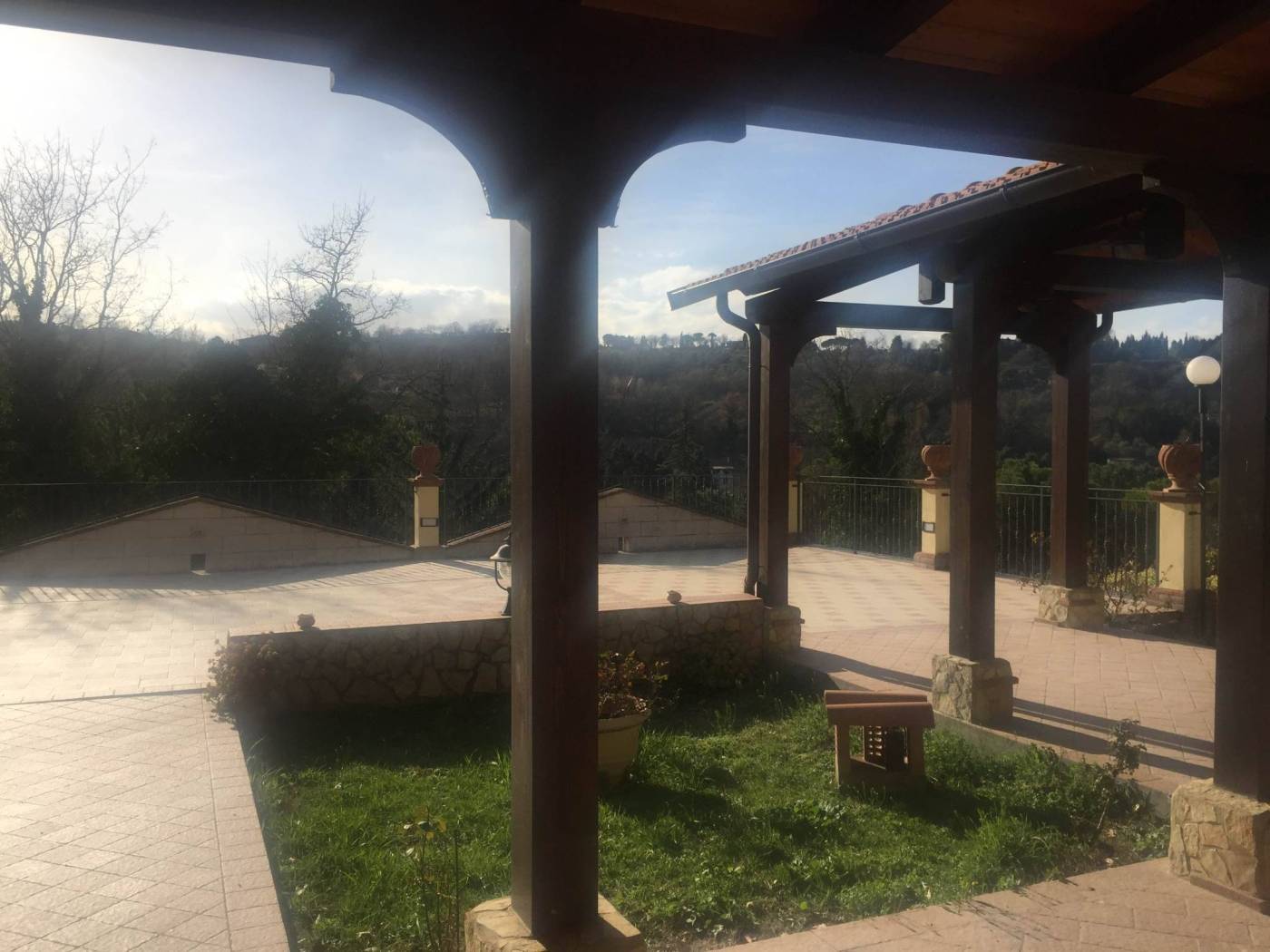 Villa in collina nella zona di San Rocco, di 327 mq,con giardino e terreno di 3840 mq con ulivi. La villa ha una posizione assolata con vista sulla città,immersa nel verde,a pochi minuti dal centro cittadino. Si compone su due livelli. al piano terra troviamo un ampio salone,un tinello,una cucina,bagno e una taverna con camino e angolo cottura, anche se non si può definire taverna essendo fuori terra. Da questo piano si accede su un ampio portico coperto. Al primo piano troviamo 4 camere,uno studio,2 bagni,stanza lavanderia, e un ampio terrazzo. La villa si compone anche di una depandance di 68 mq, con soggiorno angolo cottura,camera e bagno. Completa la propietà un garage,un rimessaggio per gli attrezzi. La villa ha un APE F La depandance APE D. Materiali di ottima qualità nello special modo all'esterno. Per Info Antonella 3923935237 APE C
